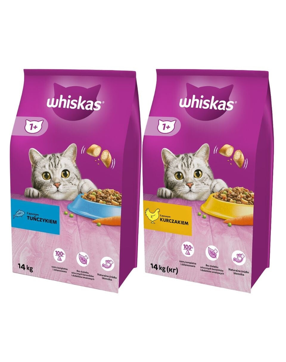 Suché krmivo WHISKAS pre dospelé mačky s tuniakom je plnohodnotné krmivo s optimálnym zložením a lahodnou chuťou. Ich zloženie vyvinuli odborníci na výživu a veterinári z Centra výživy zvierat WALTHAM a obsahujú všetko, čo podporuje funkciu vašej mačky v kľúčových oblastiach. Prídavok vitamínu A má posilňujúci účinok na oči, zatiaľ čo prítomnosť omega-6 mastných kyselín a zinku podporuje zdravú kožu a srsť. Optimálny obsah minerálov v krmive WHISKAS® pomáha vašej mačke udržiavať zdravé močové cesty po dlhé roky. Špeciálna, mierne abrazívna štruktúra granúl znižuje tvorbu zubného kameňa a pomáha udržiavať zuby vášho mačacieho priateľa zdravé.