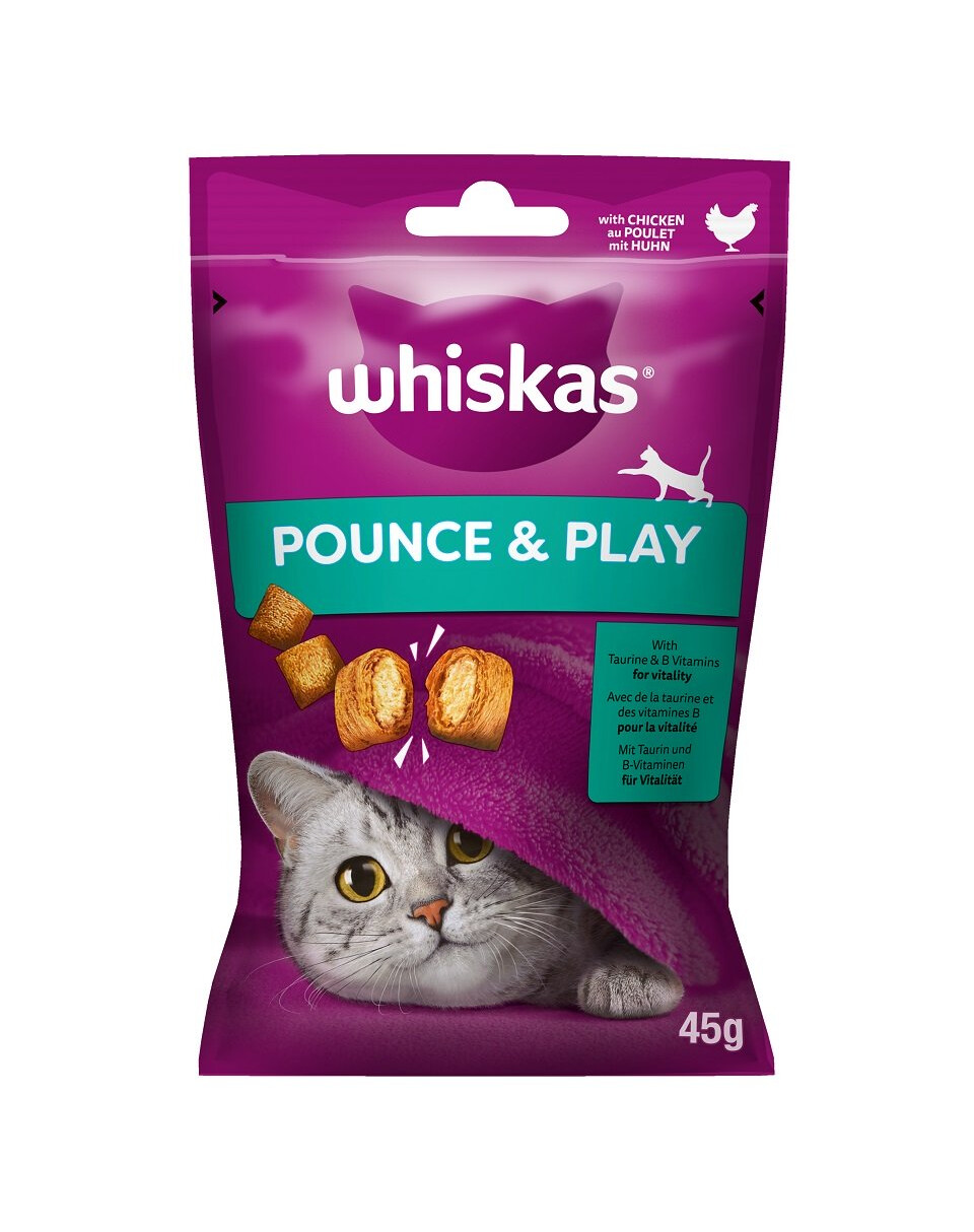 WHISKAS Energy and Vitality s kuracím mäsom je chutný a zdravý snack v podobe chrumkavých koláčikov s krémovou náplňou. Ich zloženie bolo navyše obohatené o vitamíny a minerály a taurín, ktorý pomáha udržiavať zdravé a silné srdce. Obsah vitamínov skupiny B podporuje vitalitu a pohyblivosť vášho domáceho maznáčika. S krmivom WHISKAS Energy and Vitality poskytnete svojej mačke nielen skvelé potešenie počas dňa, ale predovšetkým sa postaráte o jej zdravie. Vaša mačka bude vrčať ešte viac!