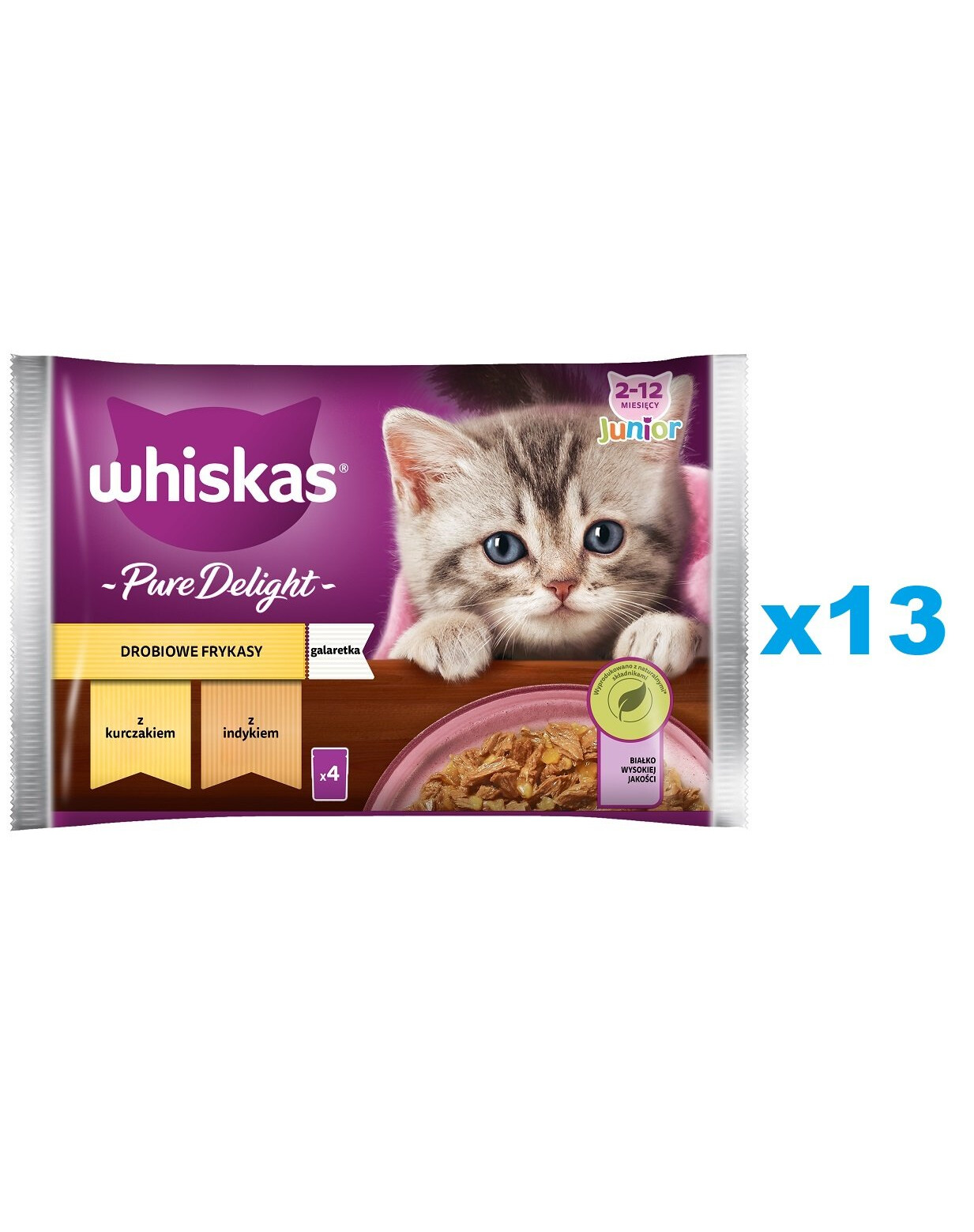 Lahodné kúsky krmivaWhiskas Junior Poultry Jellied Fritters sú pripravené tak, aby si zachovali svoju prirodzenú chuť a výživovú hodnotu. Vďaka vareniu v pare sú šťavnaté a jemné, čo vašu mačku poteší. Vaša mačka si pochutí na jednom z dvoch variantov: kúsky s kuracím mäsom a s morčacím mäsom. Krmivo Whiskas je pripravené z prírodných surovín a vysokokvalitných bielkovín bez použitia umelých farbív a konzervačných látok pre výnimočný pôžitok z jedla a zdravý vývoj. Ľahko konzumovateľné lahodné, jemné sústa obsahujú zinok na podporu zdravia kože a srsti, ako aj všetky živiny, ktoré vaše mačiatko potrebuje, keď rastie a objavuje nový svet.