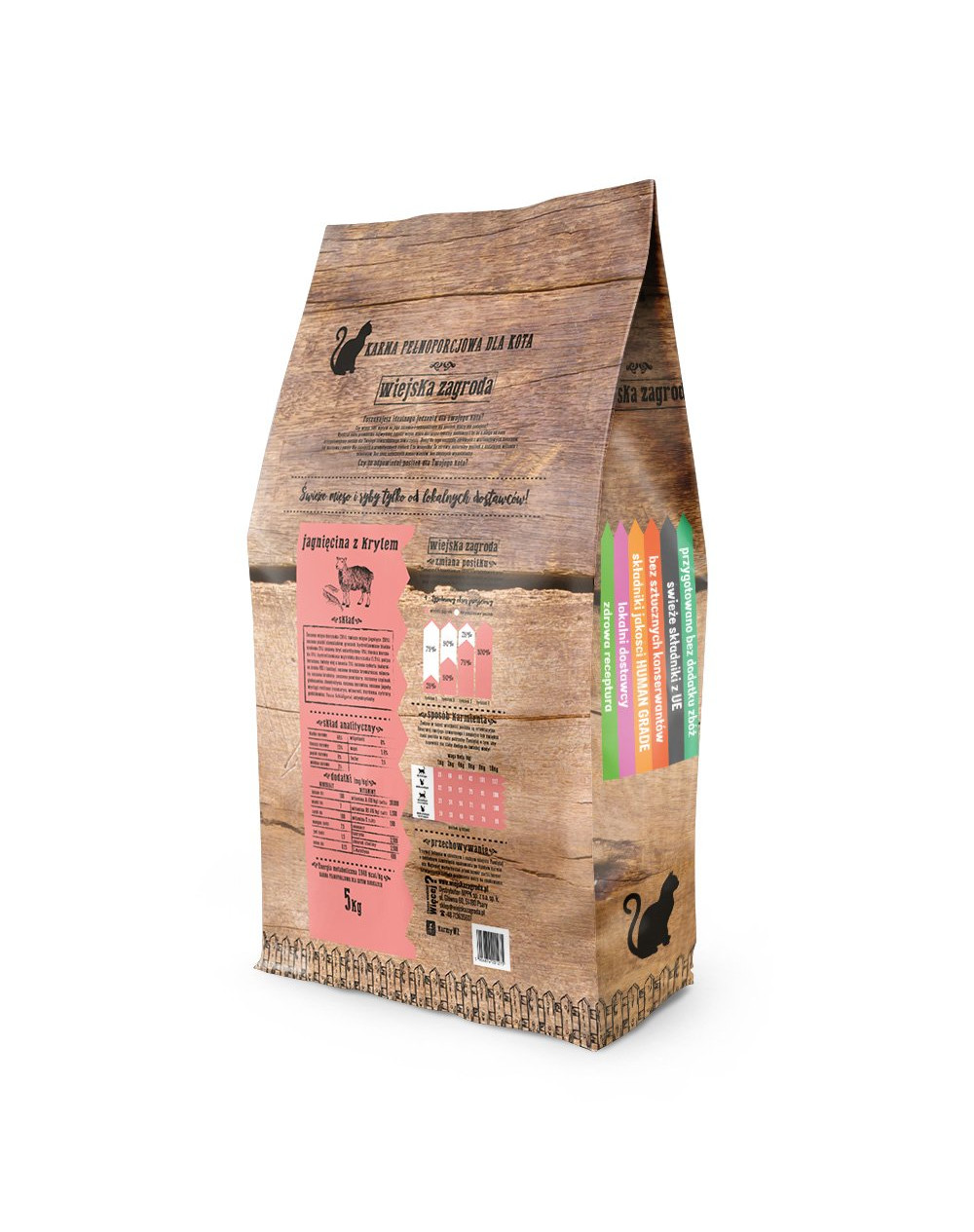 V potrave je správne množstvo taurínu, ktoré je nevyhnutné pre správny vývoj a zdravie mačky. Táto aminokyselina by sa mala dodávať s jedlom, aby sa zabezpečila vitalita. Vyrobené v Poľsku, s prísadami najvyššej kvality od miestnych dodávateľov. Zložky kvality ľudskej kvality sú tiež určené na ľudskú spotrebu. Zloženie krmiva je založené iba na mäse, zelenine, ovocí a bylinkách, ktoré dodávajú miestni dôveryhodní dodávatelia. To zaisťuje ich vysokú kvalitu a vždy sviežosť. Potraviny neobsahujú konzervačné látky, farbivá ani príchute.
