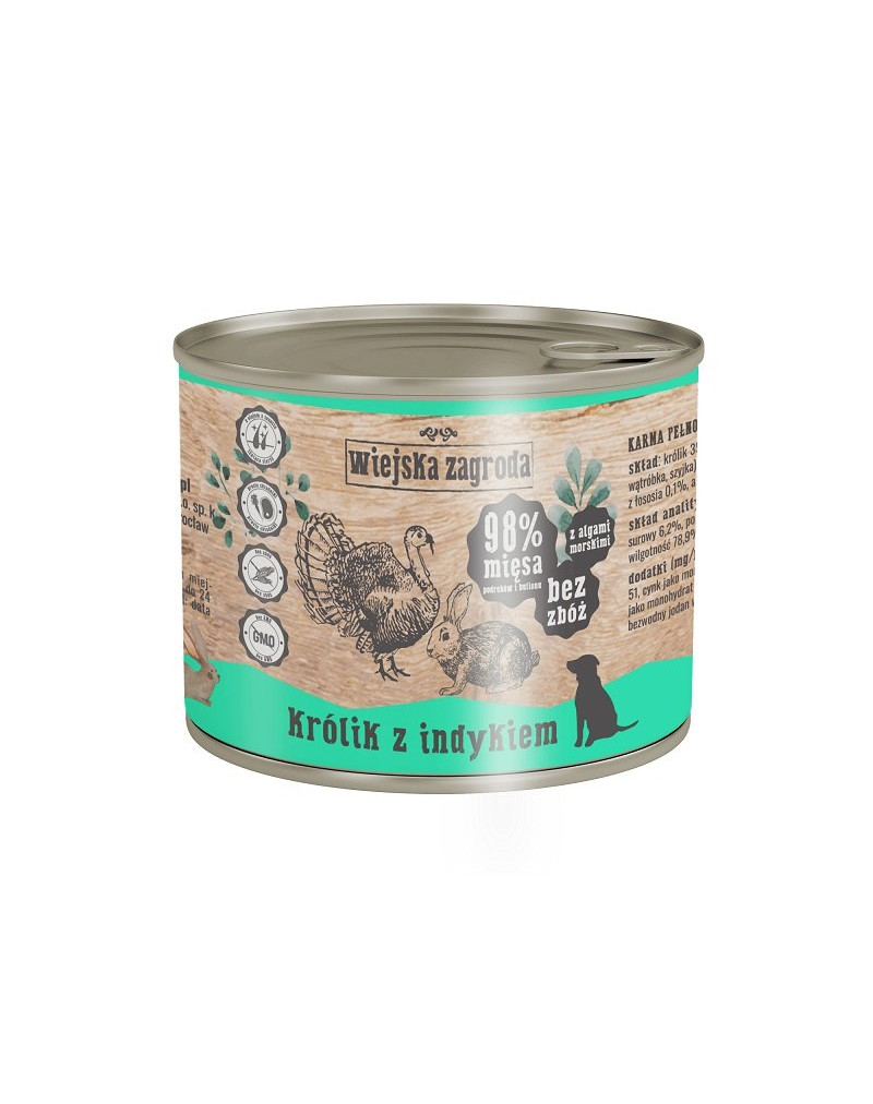 Vysoko kvalitné konzerva s ľahko stráviteľnú morkou a jemným králikom je plnohodnotné mokré krmivo pre psov, ktoré poskytuje všetky aminokyseliny a minerály potrebné pre domáceho maznáčika. Aby bolo krmivo pre psa zdravé a vyvážené, je krmivo vyrobené výhradne z čerstvých produktov, bez prídavku obilnín alebo sóje.