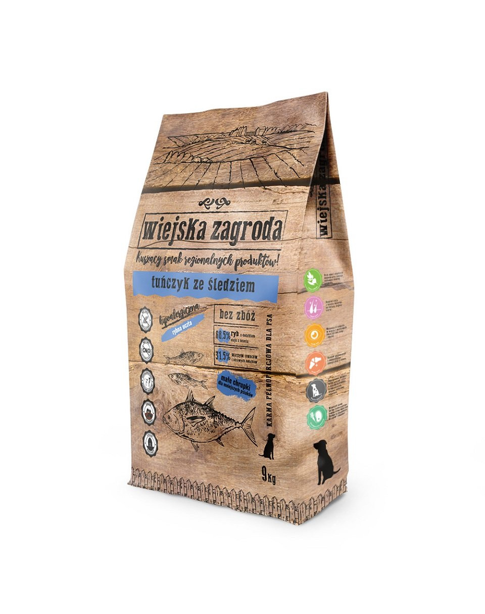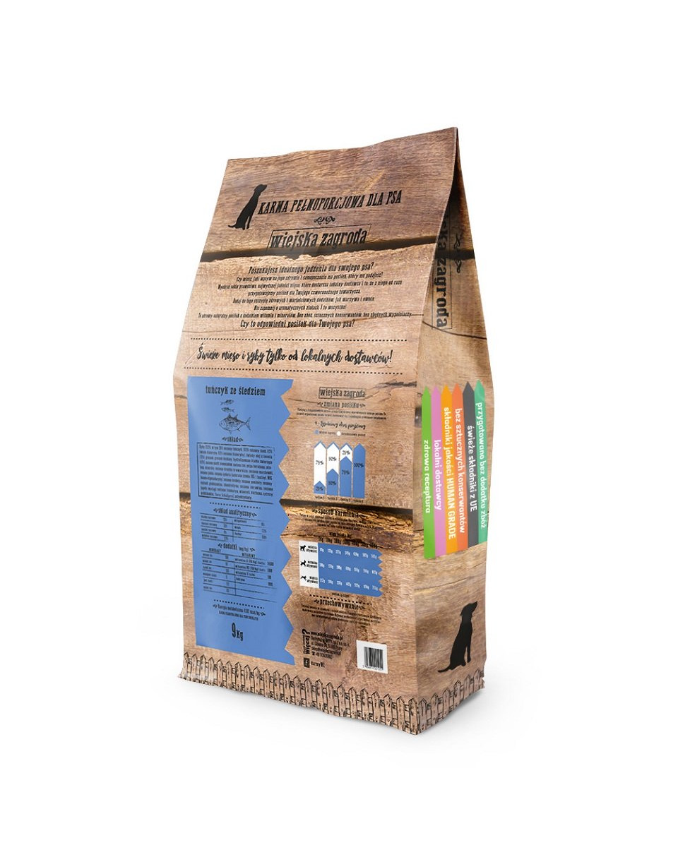 Vyrobené v Poľsku, s prísadami najvyššej kvality od miestnych dodávateľov. Zložky kvality ľudskej kvality sú tiež určené na ľudskú spotrebu. Receptúra bez zŕn je pre psy biologicky vhodná. Zložky, v ktorých je mäso ryby vynikajúce - molice, sleď, losos, tuniak, boli vybrané tak, aby celá vec bola najlepšia a najľahšie stráviteľná. Čerstvý lososový olej sa pridal do vákua na samom konci procesu výroby krmiva, vďaka čomu nestratil žiadne vlastnosti podporujúce zdravie. Ryby majú veľmi nízky alergénny faktor, preto jedlo môžu konzumovať psi s alergiou, psi s citlivým zažívacím systémom a so sklonom k vylučovaniu vlasov. Vysoký obsah Omega 3 kyselín podporuje proces rastu vlasov, zaisťuje jeho správnu hydratáciu a výživu.