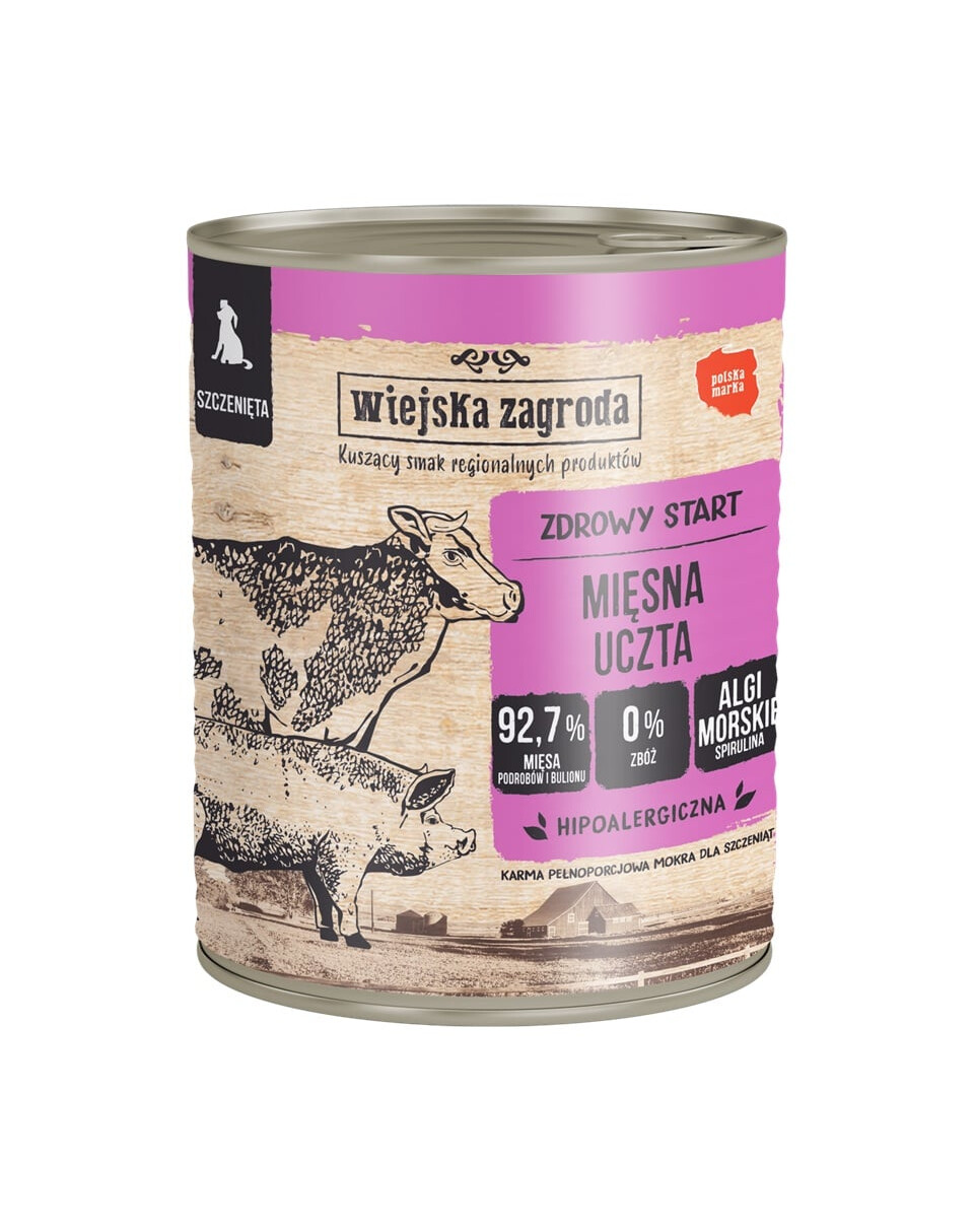 Mokré krmivo Wiejska Zagroda je plnohodnotné, zdravé jedlo pre psa, bez ohľadu na to, či je malý, veľký, krátkosrstý alebo kučeravý. Pes je mäsožravec a my sme sa postarali, aby v našom menu bolo len to najlepšie.
