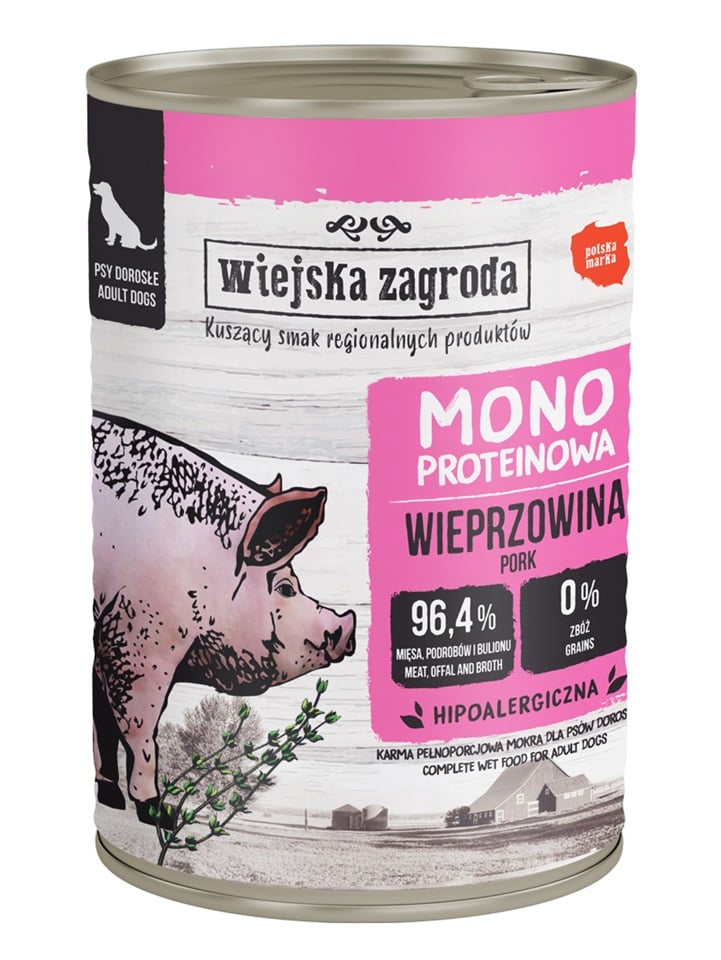 Kompletná značka mokrého krmiva pre dospelých psov s bravčovým mäsom