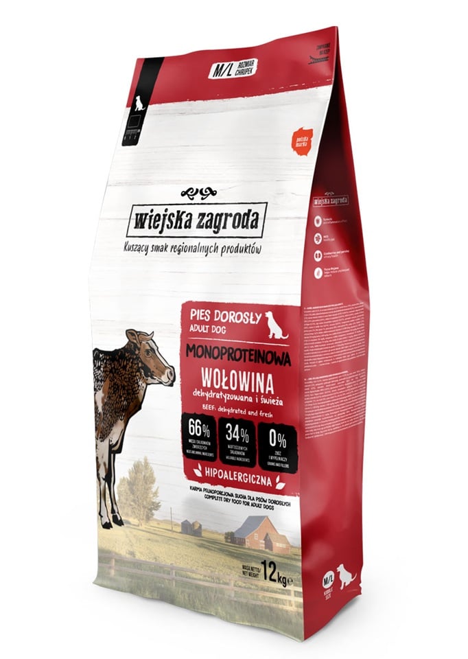 Rada monoproteínových krmív z Wiejskiej Zagrody je vyvážené krmivo určené pre psov s citlivým tráviacim traktom a sklony k alergiám. Použitie iba jedného zdroja živočíšneho bielkovina, absencia obilnín a strukovín umožňuje obmedziť riziko nežiaducich reakcií na krmivo, a množstvo prospešných prísad podporuje správne trávenie a môže zmierniť zápalové stavy spôsobené alergiami alebo opakujúcimi sa žalúdočnými problémami. Zložky krmiva tiež podporujú zdravie pokožky a prevenciu ochorení kĺbov.