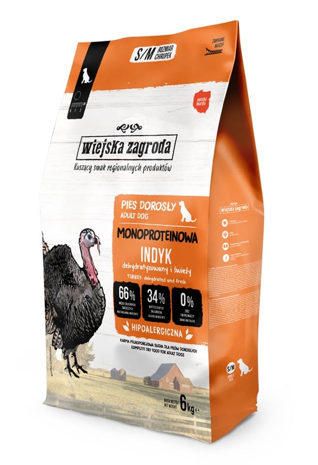 Línia monoproteínových krmív z Wiejskiej Zagrody sú vyvážené krmivá určené pre psov s citlivým tráviacim traktom a sklonmi k alergiám. Použitie iba jedného zdroja živočíšneho bielkoviny, absencia obilnín a strukovín umožňuje obmedziť riziko nežiaducich reakcií na krmivo, a rad prospešných prísad podporuje správne trávenie a môže zmierňovať zápalové stavy spôsobené alergiami alebo opakujúcimi sa žalúdočnými problémami. Zložky krmiva podporujú aj zdravie pokožky a prevenciu ochorení kĺbov.