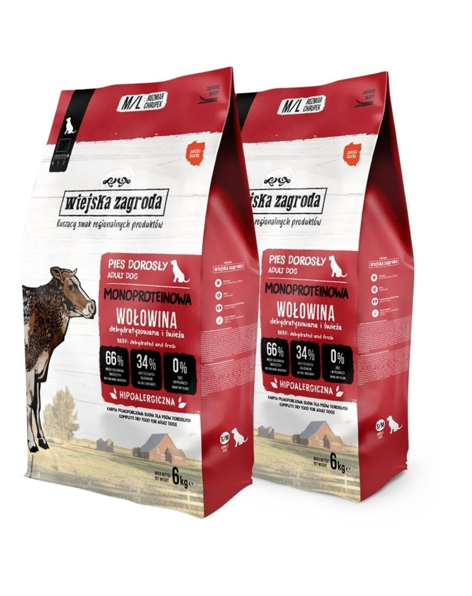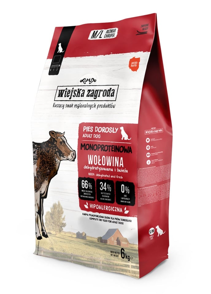 Rada monoproteínových krmív z Wiejskiej Zagrody sú vyvážené krmivá určené psom s citlivým tráviacim traktom a sklonom k alergiám. Použitie iba jedného zdroja živočíšneho bielkoviny, absencia obilnín a strukovín umožňuje obmedziť riziko nežiaducich reakcií na potravu, a rad prospešných prísad podporuje správne trávenie a môže zmierniť zápalové stavy spôsobené alergiami alebo opakujúcimi sa žalúdočnými problémami. Zložky krmiva podporujú aj zdravie pokožky a prevenciu ochorení kĺbov.