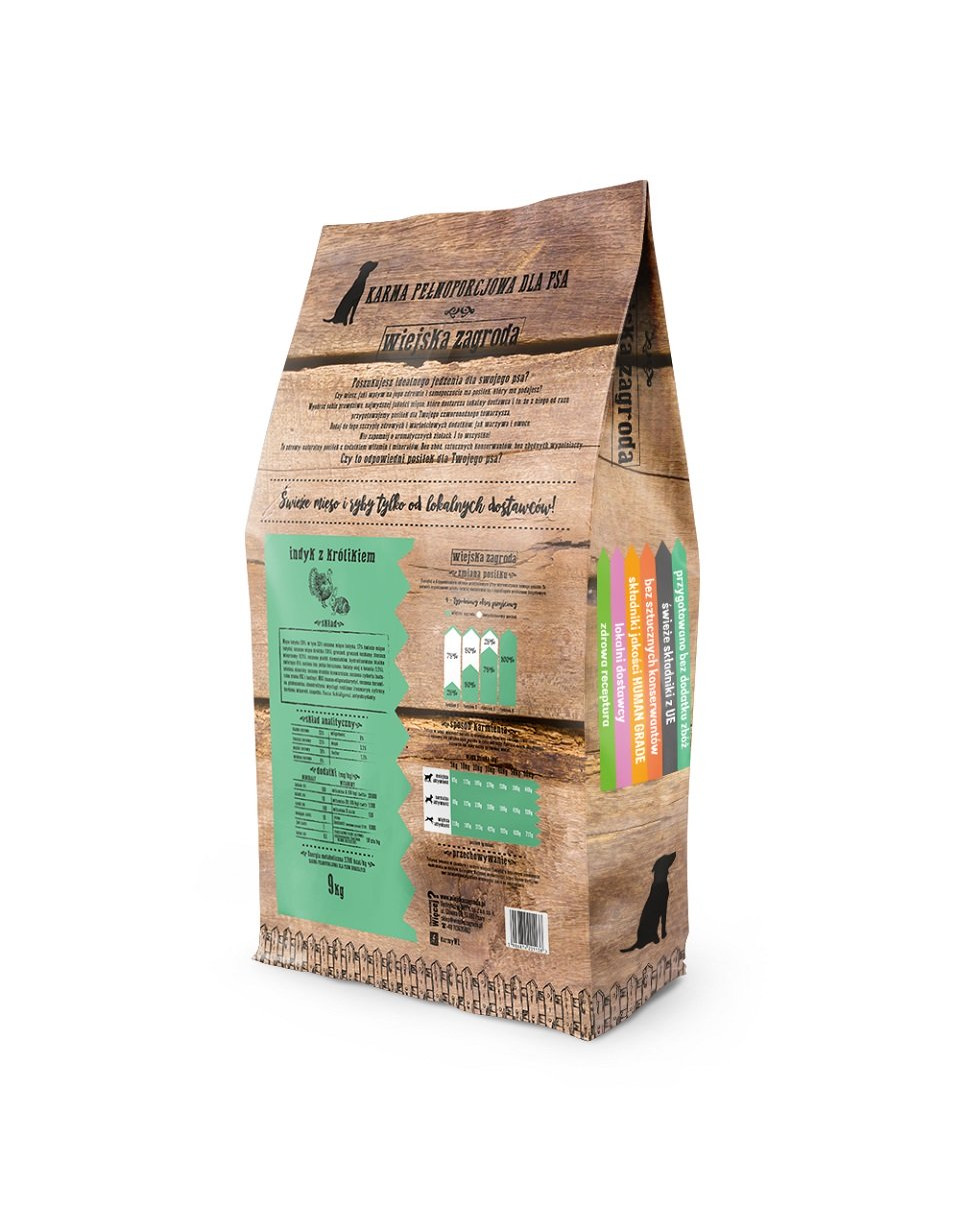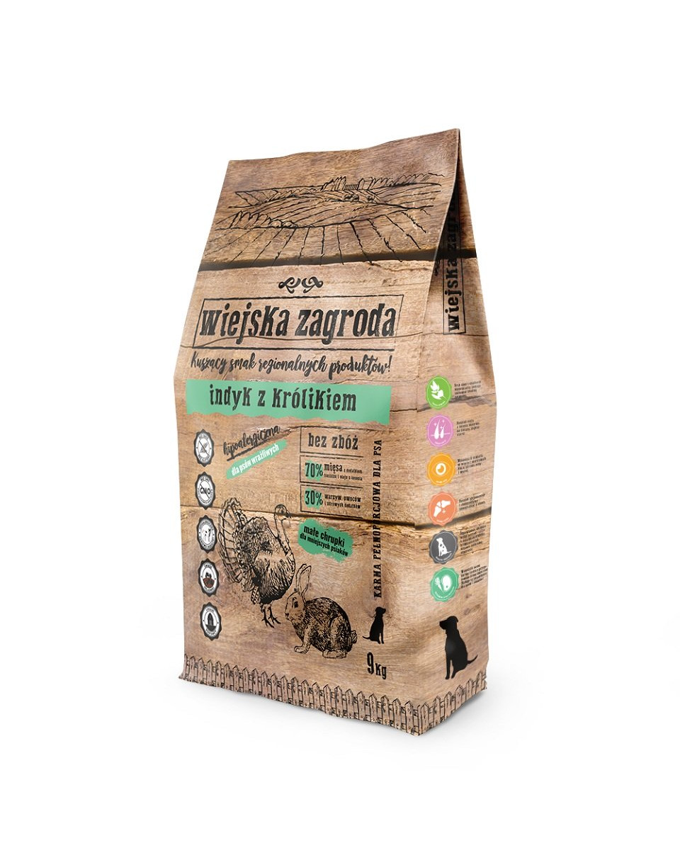Bezobilná receptúra je biologicky vhodná pre psov. Zložky, v ktorých prevyšuje mäso - morčacie a králičie - boli vybrané tak, aby bol celok čo najchutnejší a najľahšie stráviteľný. Čerstvý lososový olej bol pridaný pod vákuom na samom konci výrobného procesu krmiva, vďaka ktorému nestratil žiadne zdraviu podporujúce vlastnosti. Morčacie je chudé a ľahko stráviteľné mäso, zatiaľ čo králičie je veľmi šťavnaté, jemné, odporúča sa pre citlivé psy, najmä pre psy s citlivým zažívacím systémom. Do receptu boli pridané špeciálne probiotiká, vrátane bentonitový íl, ktorý zvyšuje asimiláciu zložiek a podporuje prirodzenú detoxikáciu organizmu. Okrem toho, mäso použité - z králikov a moriek - je dobre stráviteľné, a nedostatok obilnín a lepku nezaťažuje tráviaci systém.