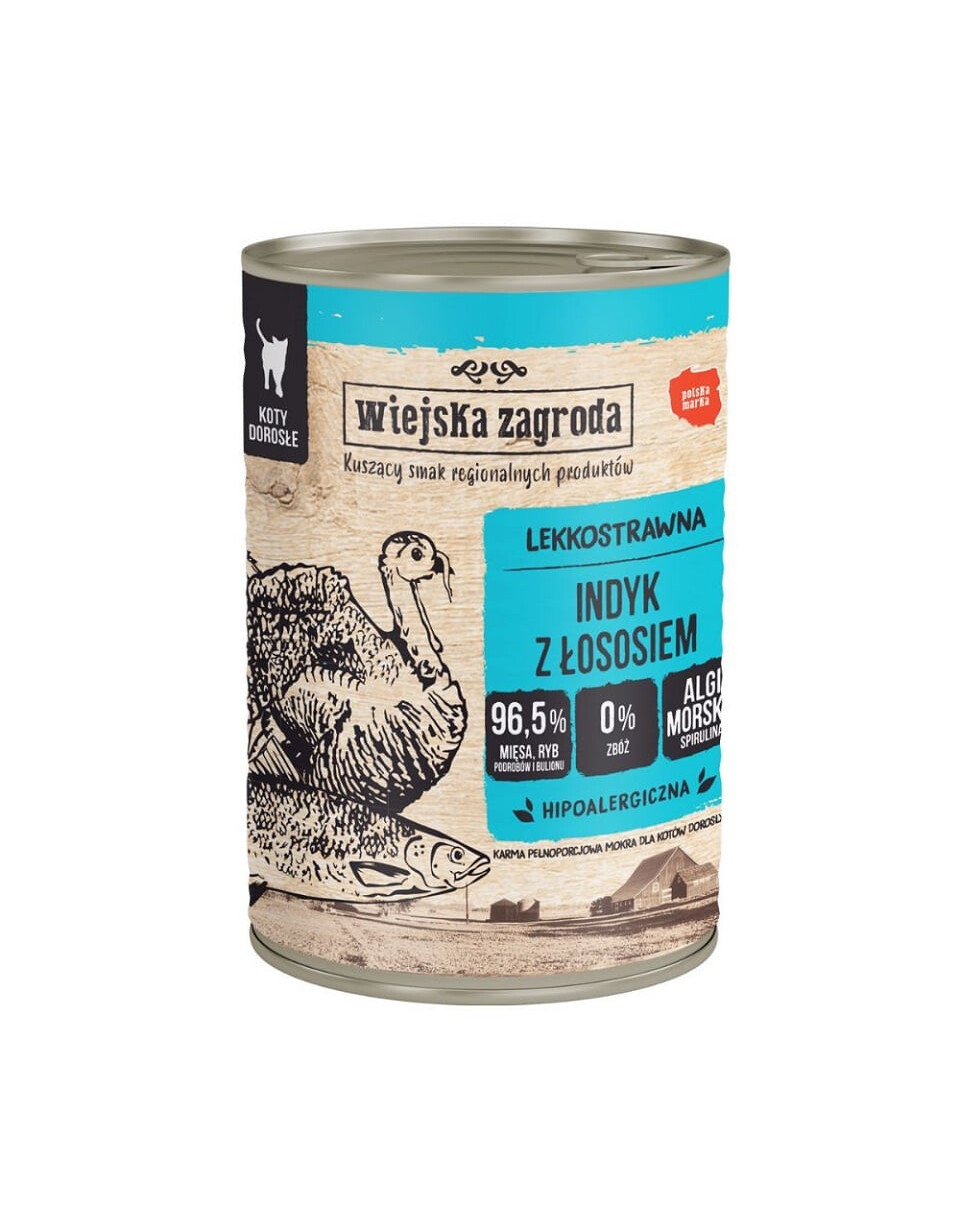 Bázou jedla sú starostlivo vybrané mäsa, ryby a vnútornosti, podávané v aromatickom domácom vývare. Mäso z moriaka je ľahko stráviteľné, chudé a bohaté na výživné bielkoviny. V kombinácii s lososom (cenným zdrojom omega-3 mastných kyselín a vitamínu D) vytvára chutné a zdravé jedlo.
