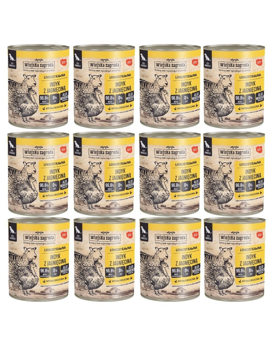 ZLOŽENIE: 44 % indyk (12 % mäso, 12 % pažerák, 12 % pečeň, 8 % žalúdok), 26 % jahňacina (mäso, črevá, vnútornosti), 25,8 % vývar, 2 % zemiaky, minerálne zložky, 0,1 % lososový olej, 0,1 % spirulina.