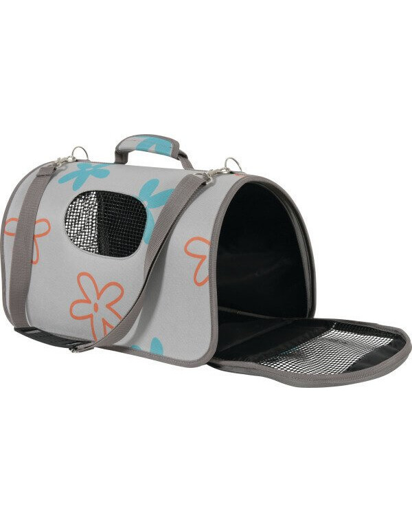 Nieprzemakalna, solidna i wytrzymała torba dla kota lub małego psa. Wykonana z przylegających do siebie części spinanych ze sobą na zamek. Można ją całkowicie otworzyć celem wyczyszczenia oraz przechowywać na płasko. Lekka: można ją przyjemnie nosić na ramieniu lub w ręce. Wyposażona w smycz z karabinczykiem.