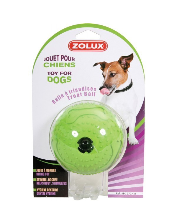 Gumová loptička pre psov, môžete naplniť lahôdkami. Priemer 7,5 cm. Mix farieb, farba je poslaná náhodne.
