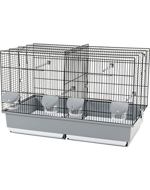 Dvojfarebná chovná klietka pre vtáky s 2 odnímateľnými zásuvkami pre jednoduhšiu hygienu.
