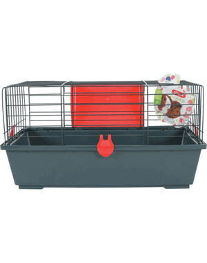 Klietka pre králiky a morčatá. Klietka má zvýšenú prednú časť. Vyrobené z netoxických materiálov pre zvieratá: epoxidová farba bez obsahu olova a polypropylénový plast.
